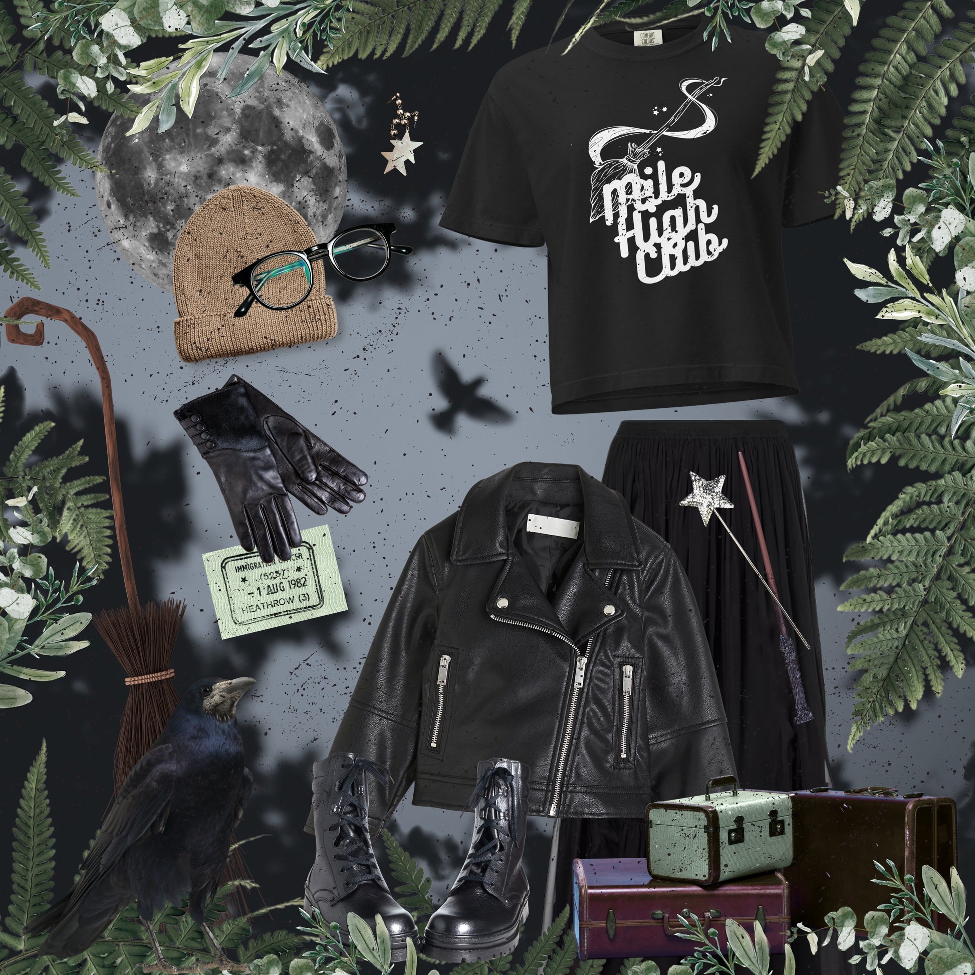 Defy gravity, drift in mystery. This whimsical broomstick flight design is for witches, sky riders and daydreamers — a nod to otherworldly wanderlust and magical altitude.